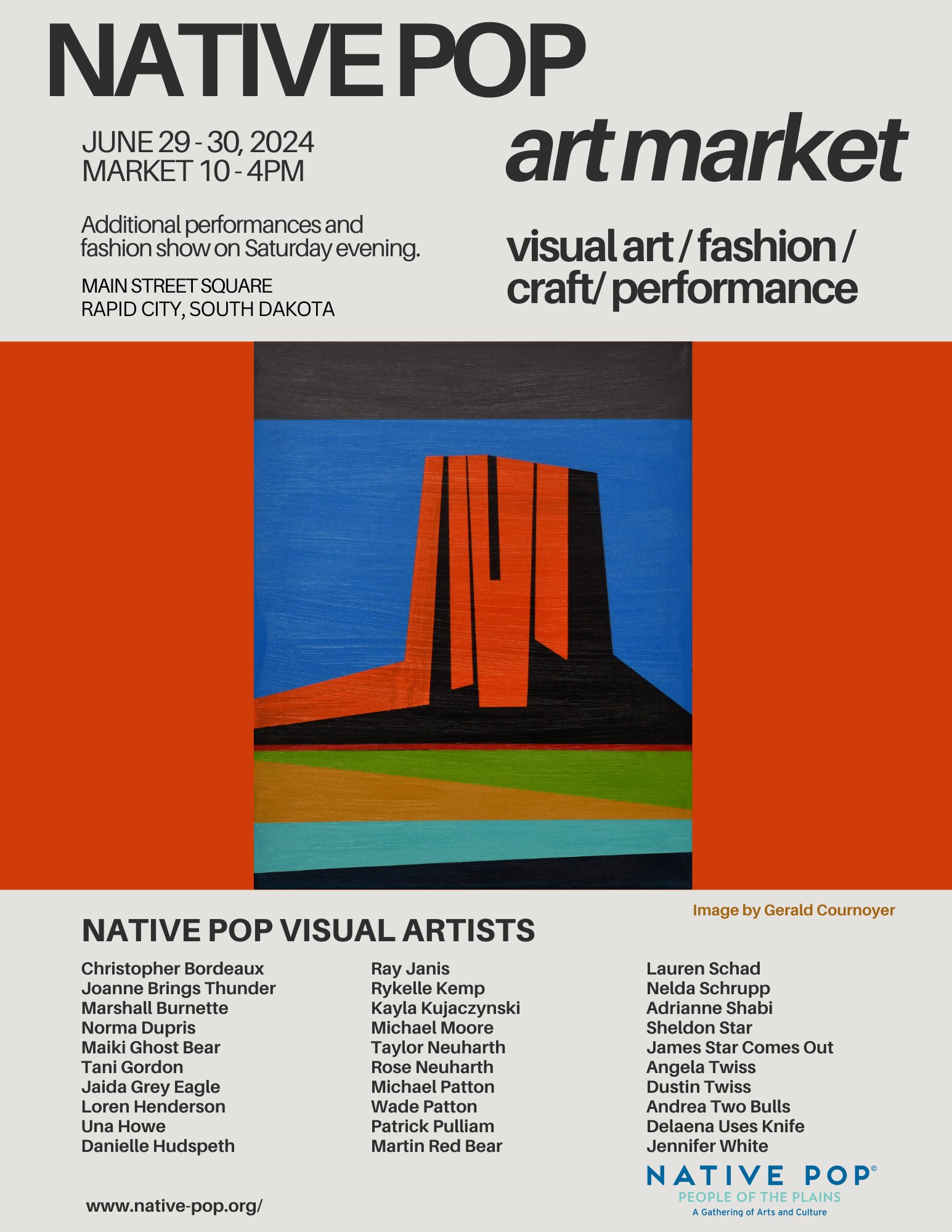 Native POP: People of the Plains - A Gathering of Arts and Culture is an annual celebration of Native American art and culture in downtown Rapid City, South Dakota every third weekend in July. Art, Performance, Culture, Community.